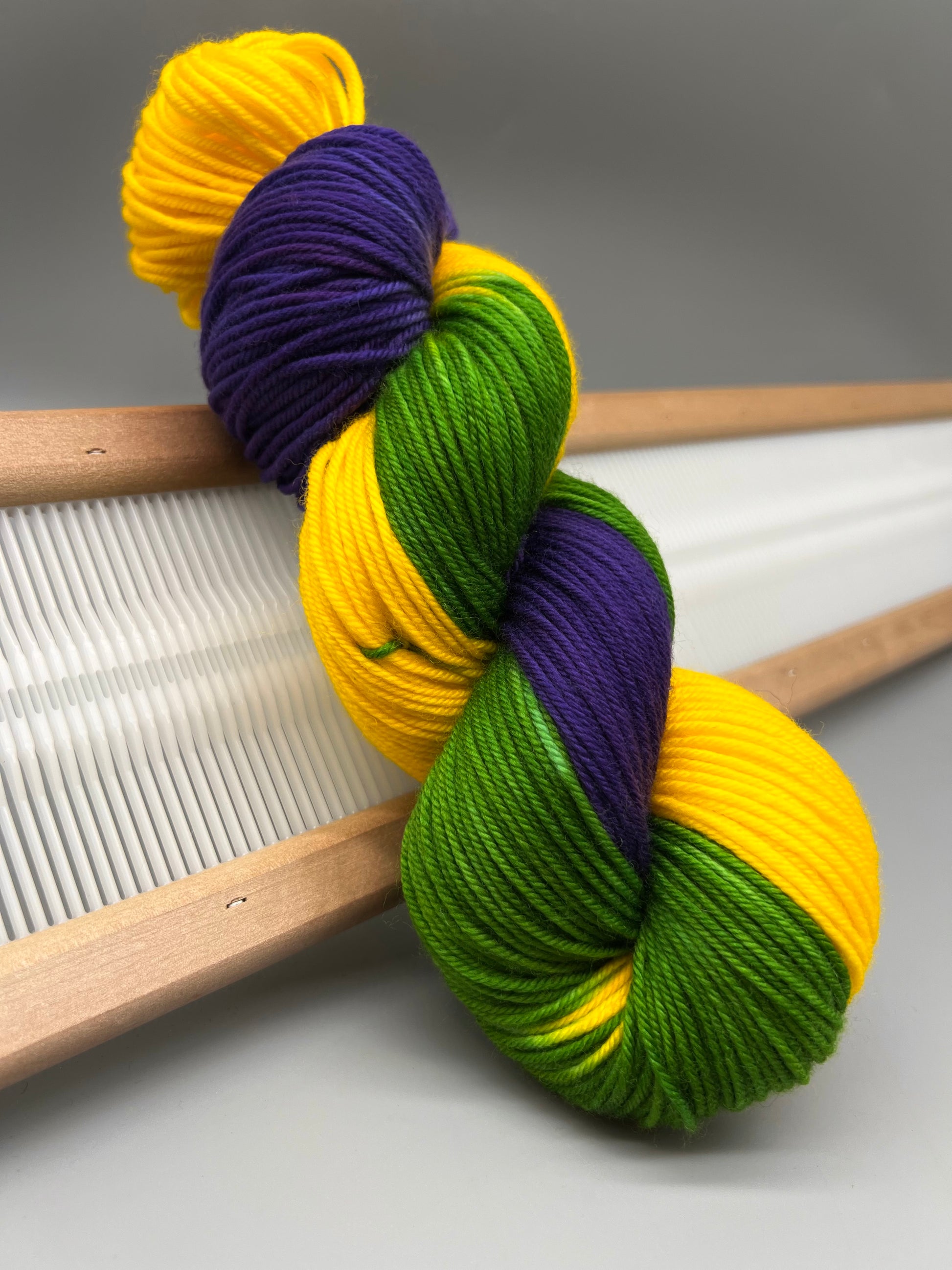 Purple green and yellow yarn similar to Mardi gras but in a different order.