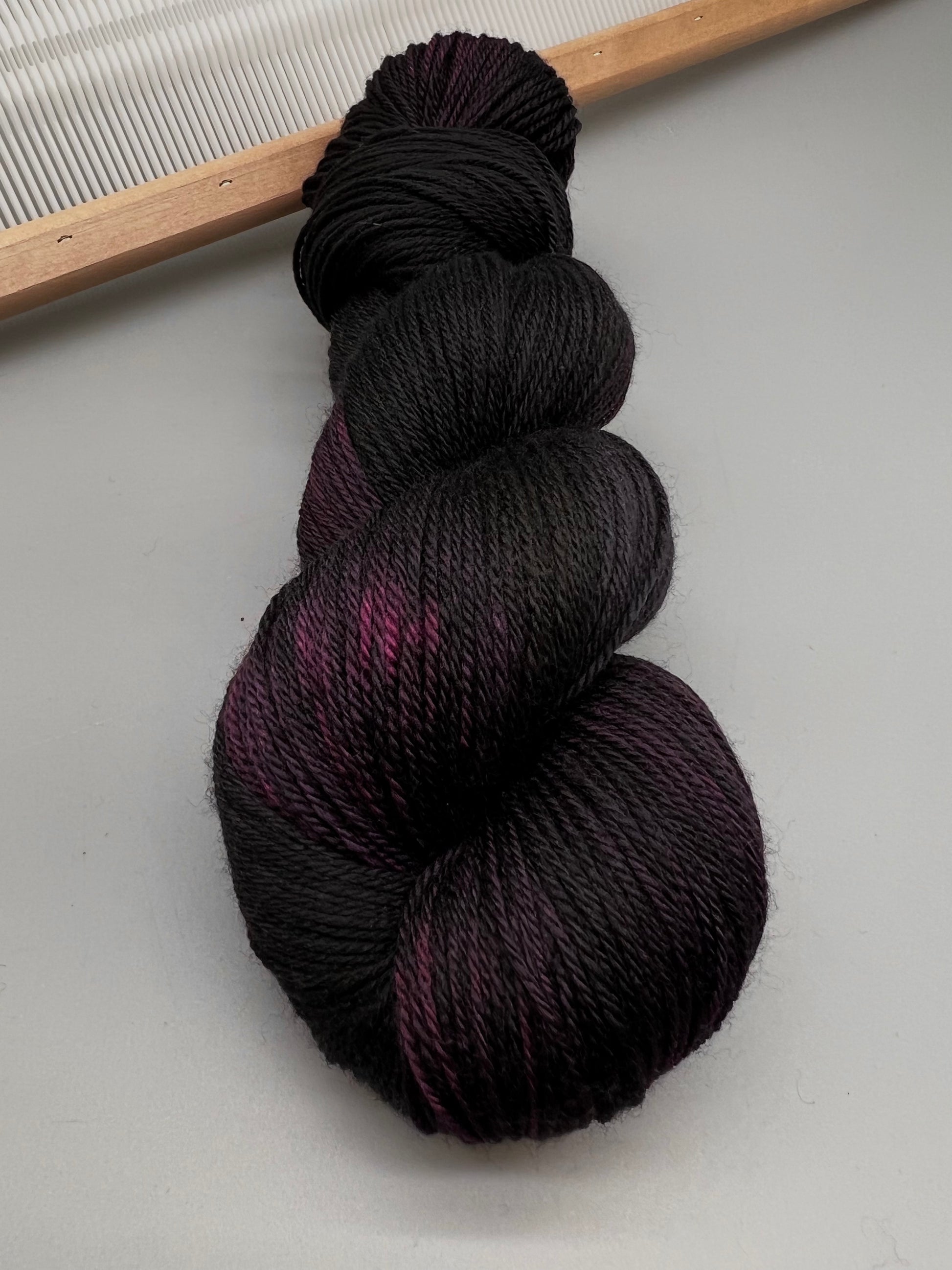 Black, purple and gray yarn.
