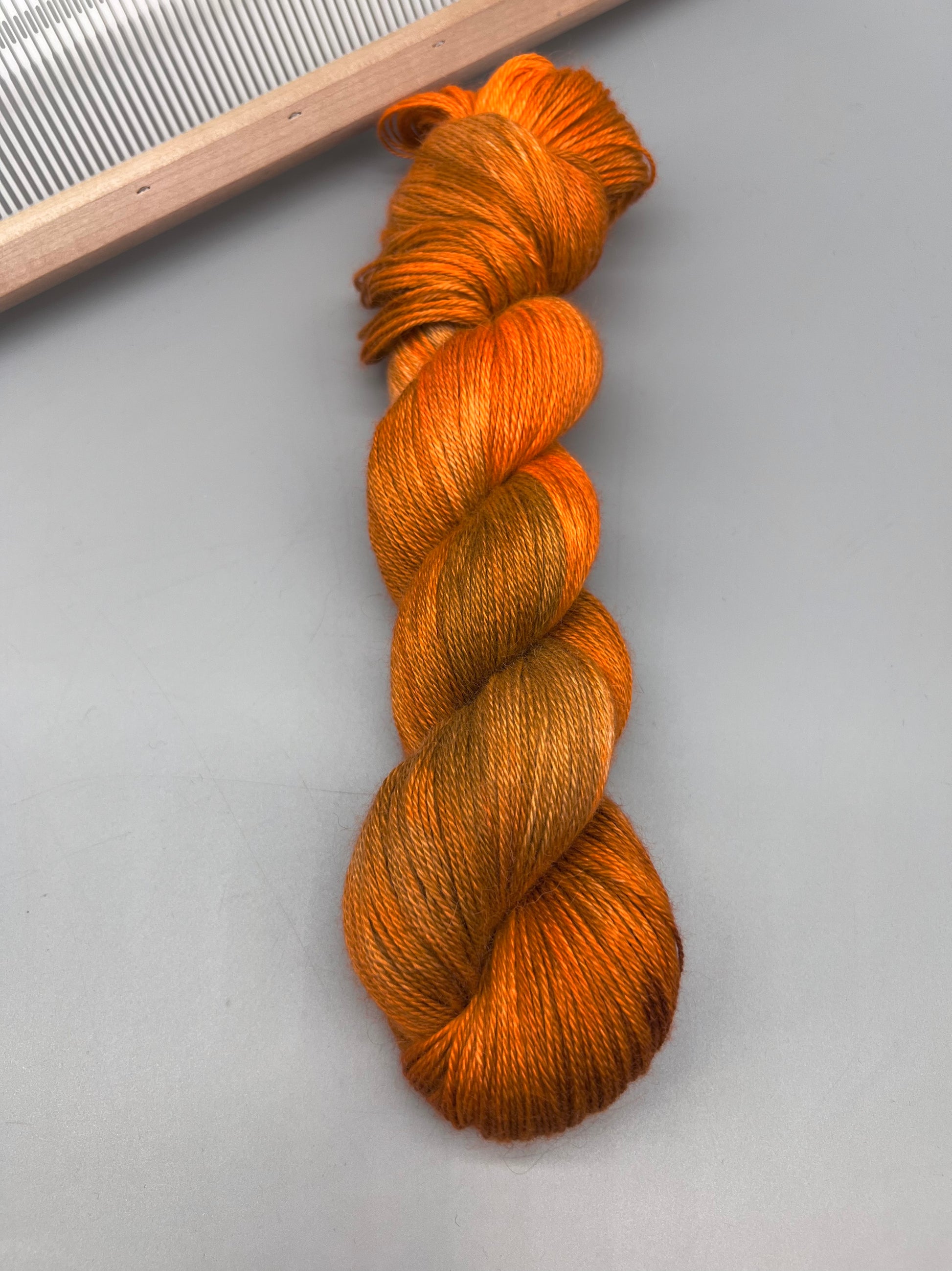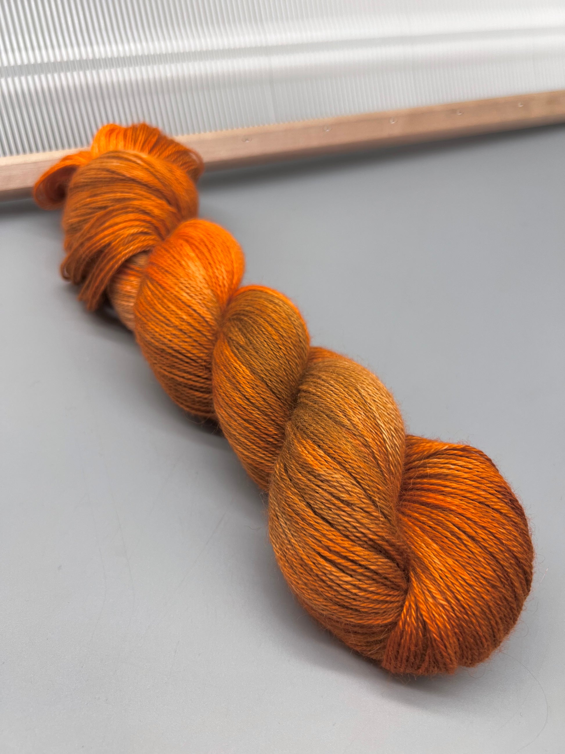 Hand dyed yarn with brown and orange